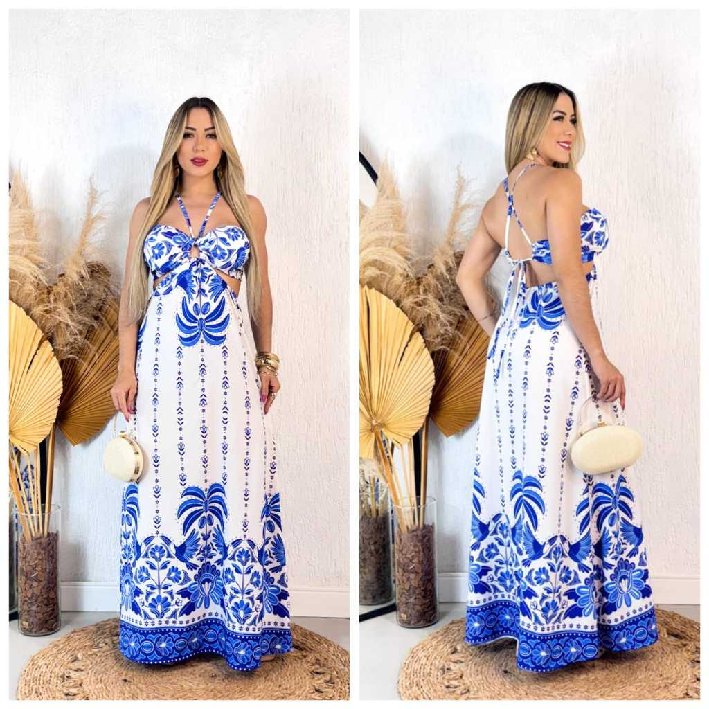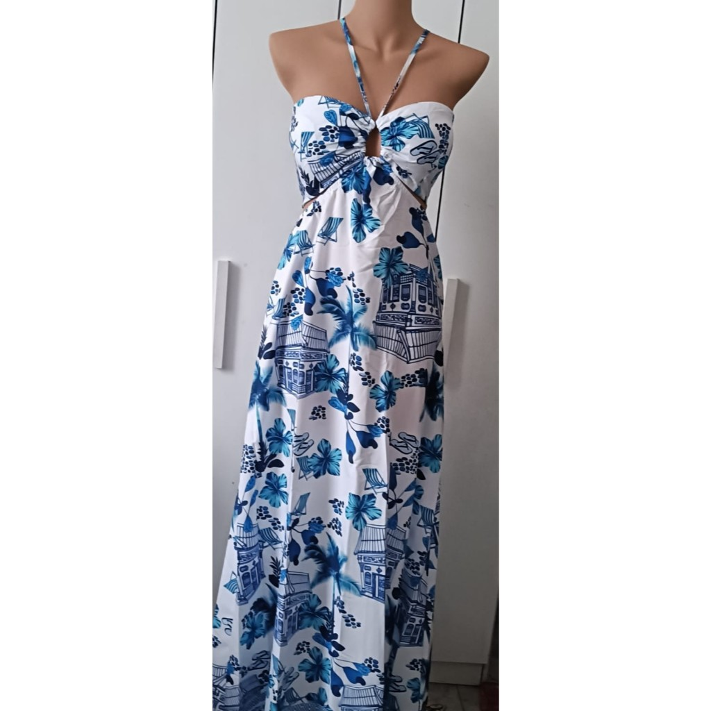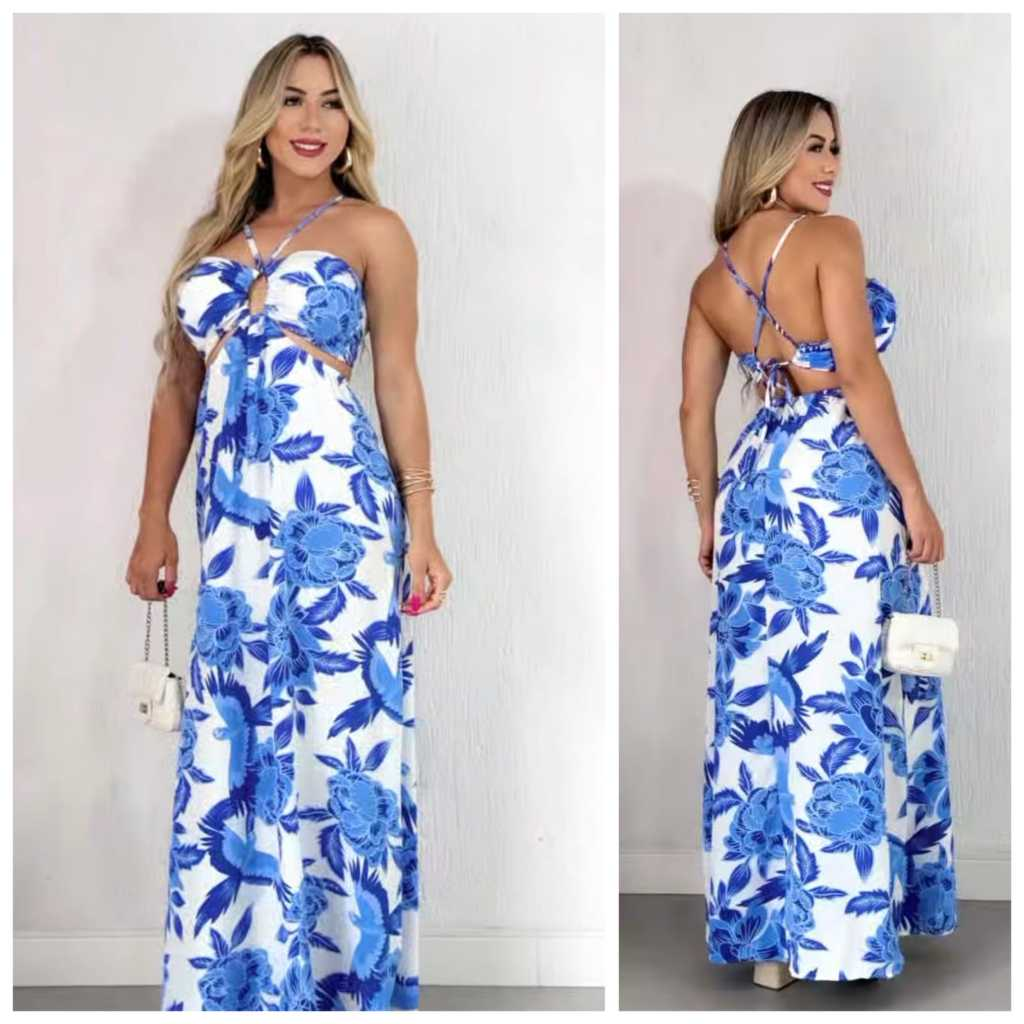 Vestido Feminino Longo Sem Manga Cintura Alta Verão