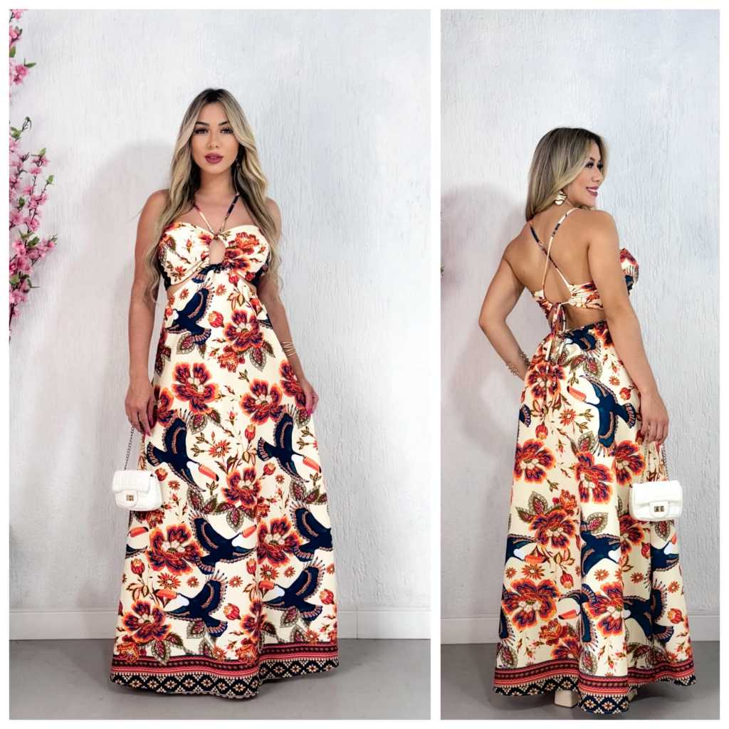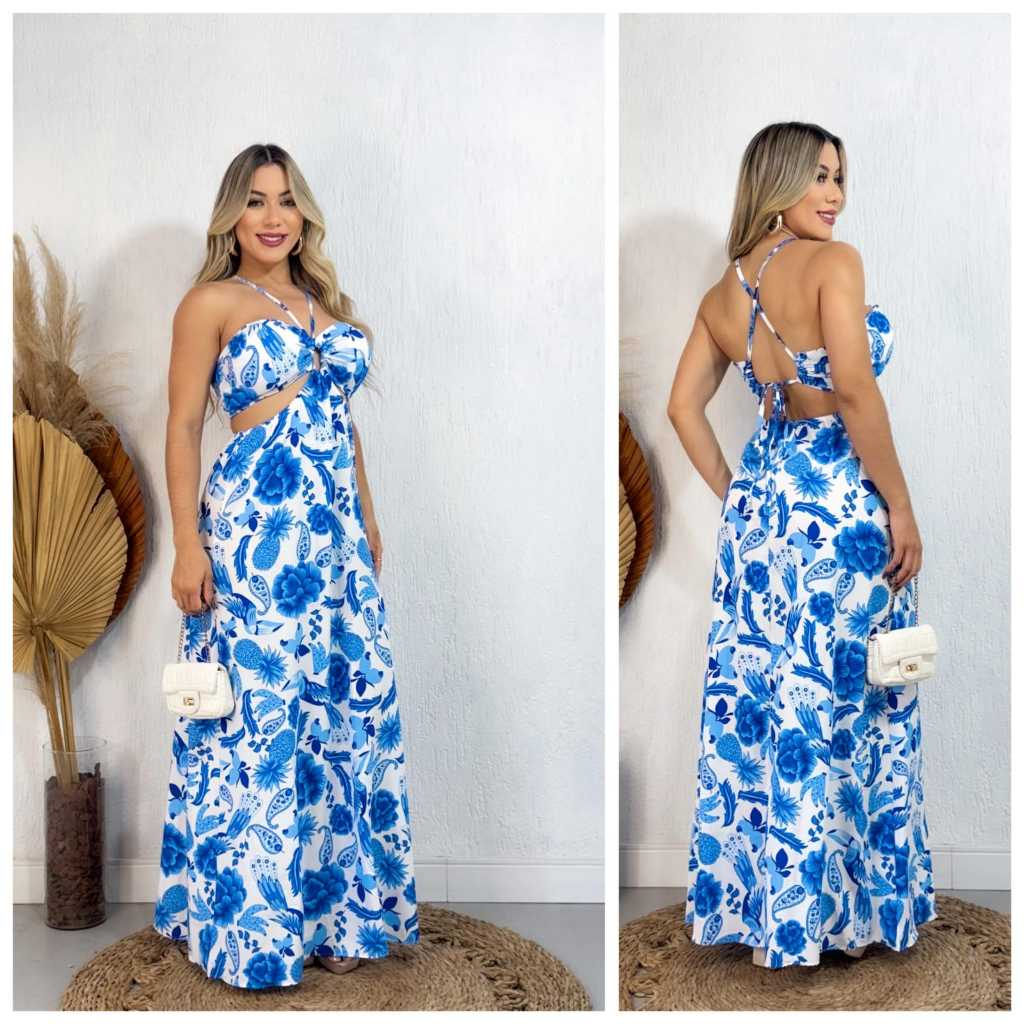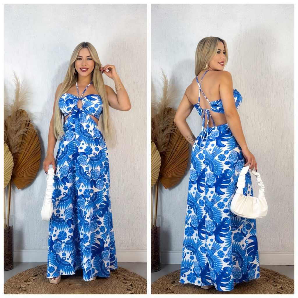 Vestido Feminino Longo Sem Manga Cintura Alta Verão
