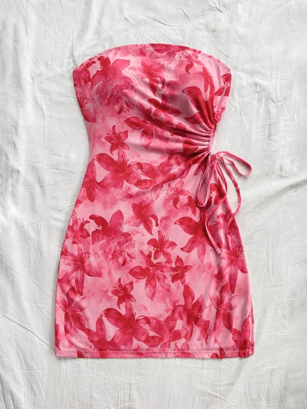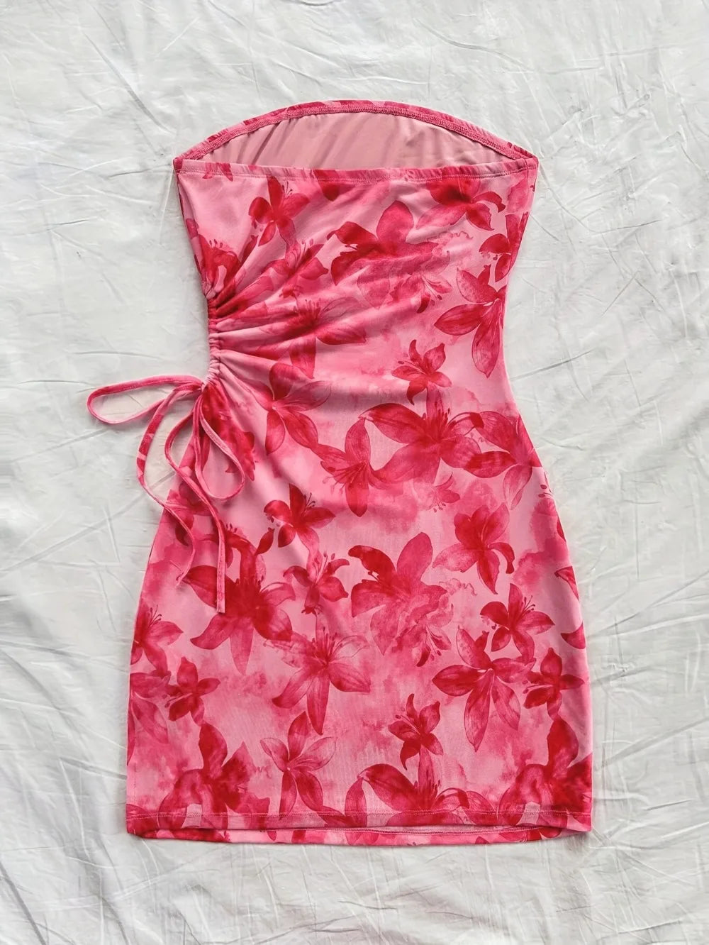 Women's 2025 Floral Print Tube Mini Dress Strapless Backless Party Club Short Ruched Drawstring Bodycon Party Dresses Streetwear